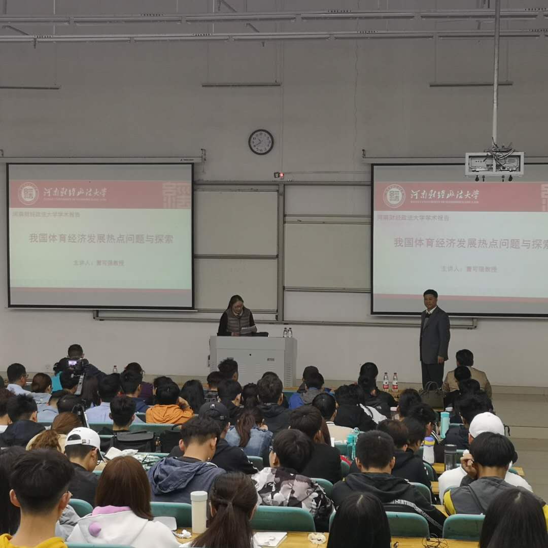 报告会上,曹可强教授对我国体育经济的发展态势、体育经济热点扫描及治理对策,进行了充分解读。报告就体育产业政策引领、政策督查的难点、政策执行的堵点、政策效应的痛点等问题进行分析。曹可强教授结合一系列大数据统计、分析,从体育产业政策的导向、体育消费引领、不同体育项目的盈利模式、体育消费市场的分化与整合等问题,对体育消费的发展方向进行研判,对加速体育经济治理提出良好建议,全面阐述了体育经济对我国整体经济的贡献和推动作用。曹可强教授十分赞赏我校基于经管法学科下构建的体育经济与管理专业,为我校体育经济与管理学科建设、专业发展、以及学生未来的就业与创业,提供了新的发展思路和方向。曹教授精彩的讲述引发了现场师生的共鸣,会后部分参会师生与曹教授进行了热烈的探讨。