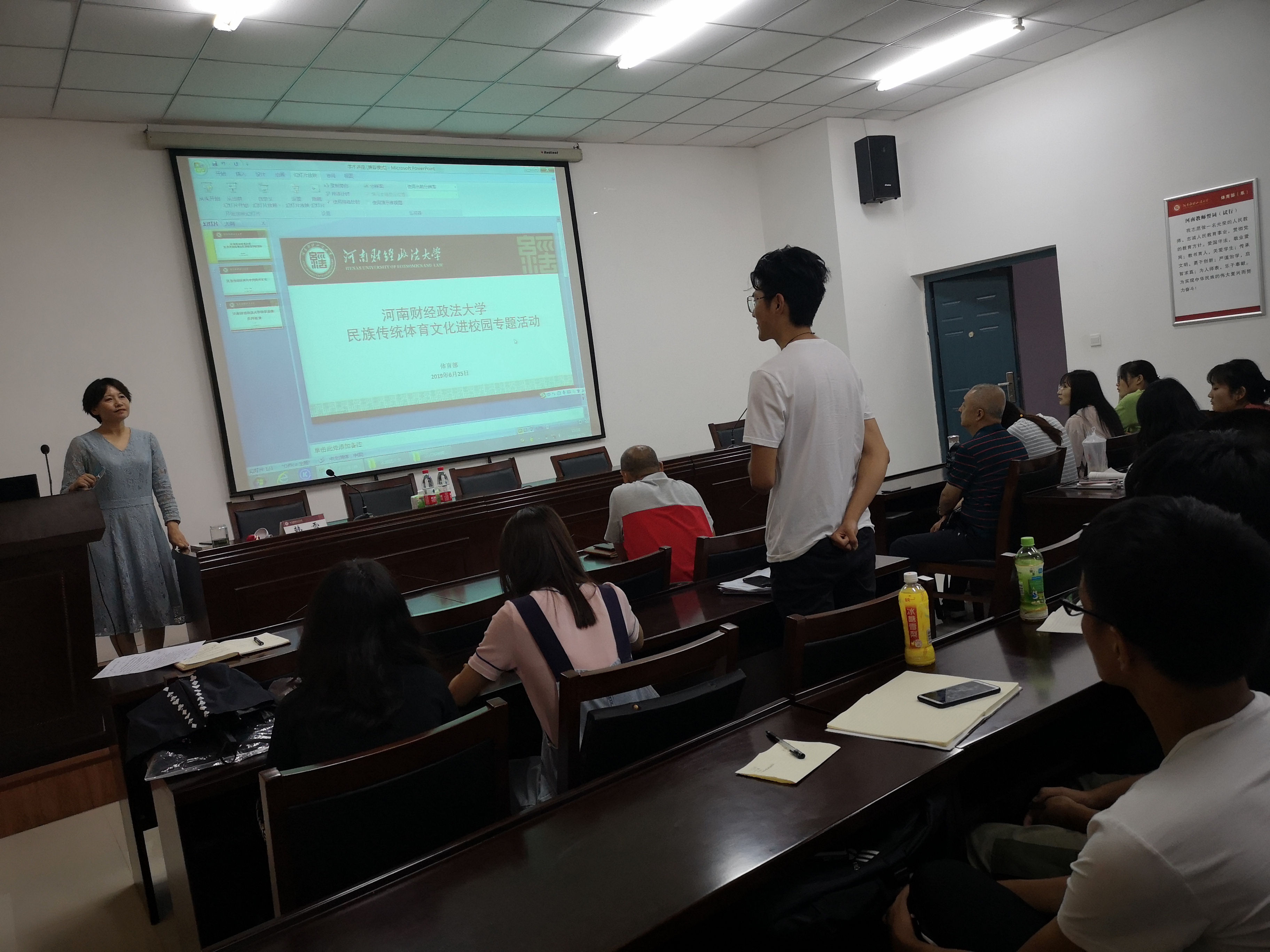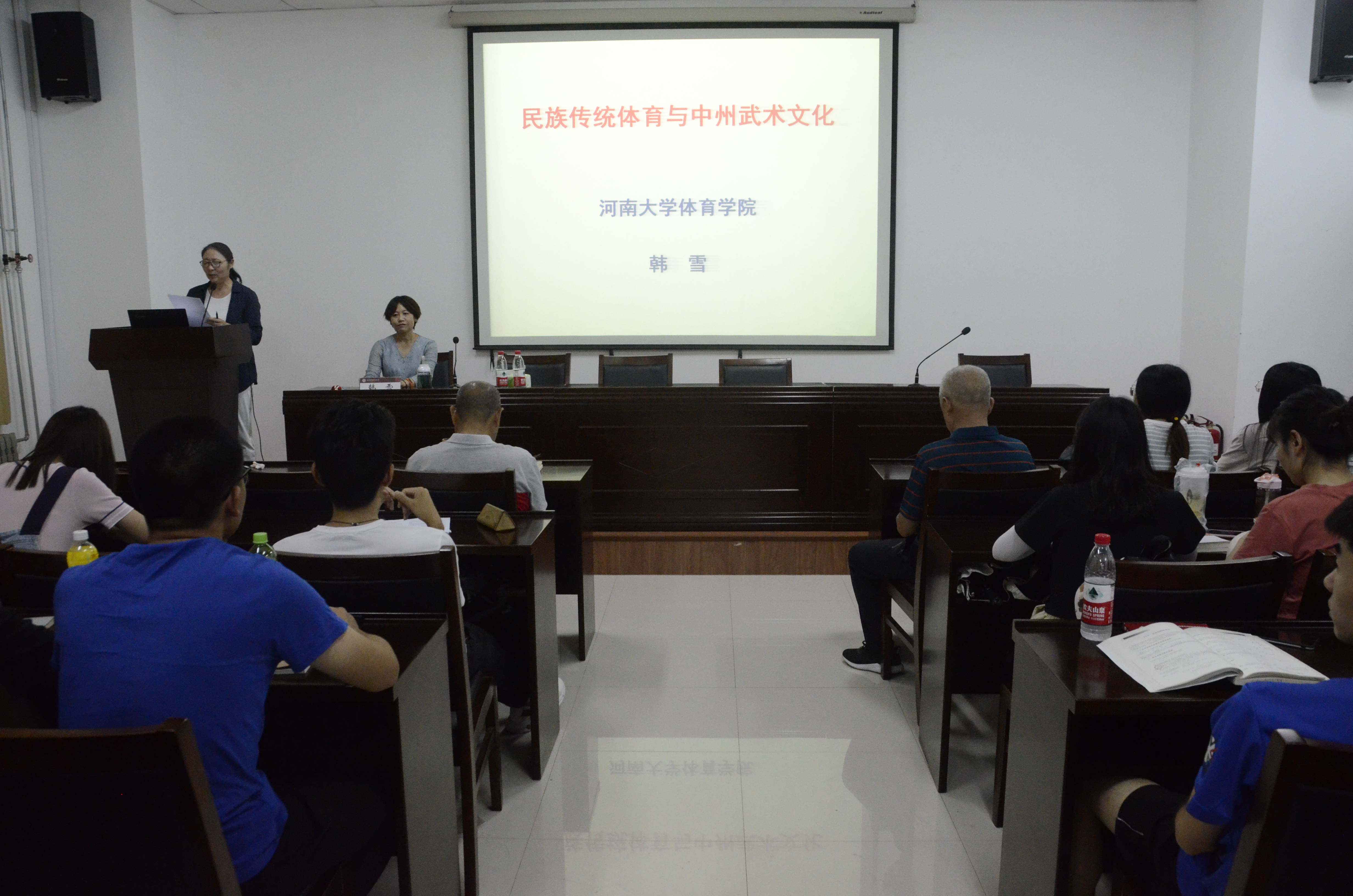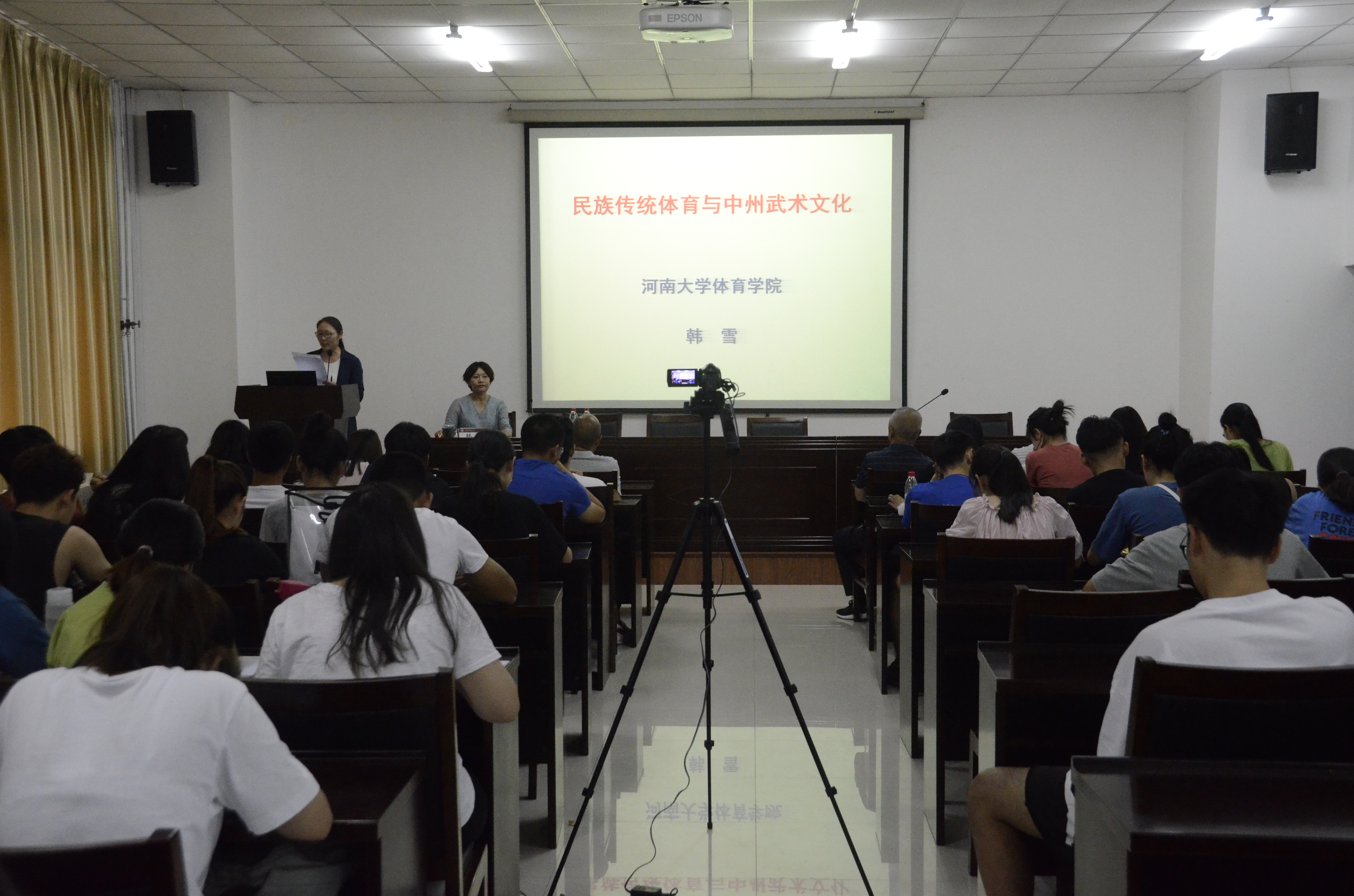 6月25日下午,我校体育部(系)邀请河南大学国家体育社科基地副主任、专职研究员、上海师范大学英国365集团和河南大学英国365集团民族传统体育专业负责人韩雪教授,来我校进行了“民族传统体育进校园”为主题的学术报告。学术报告会由体育部(系)主任马永红教授主持,体育部(系)师生200余人参加了报告会。