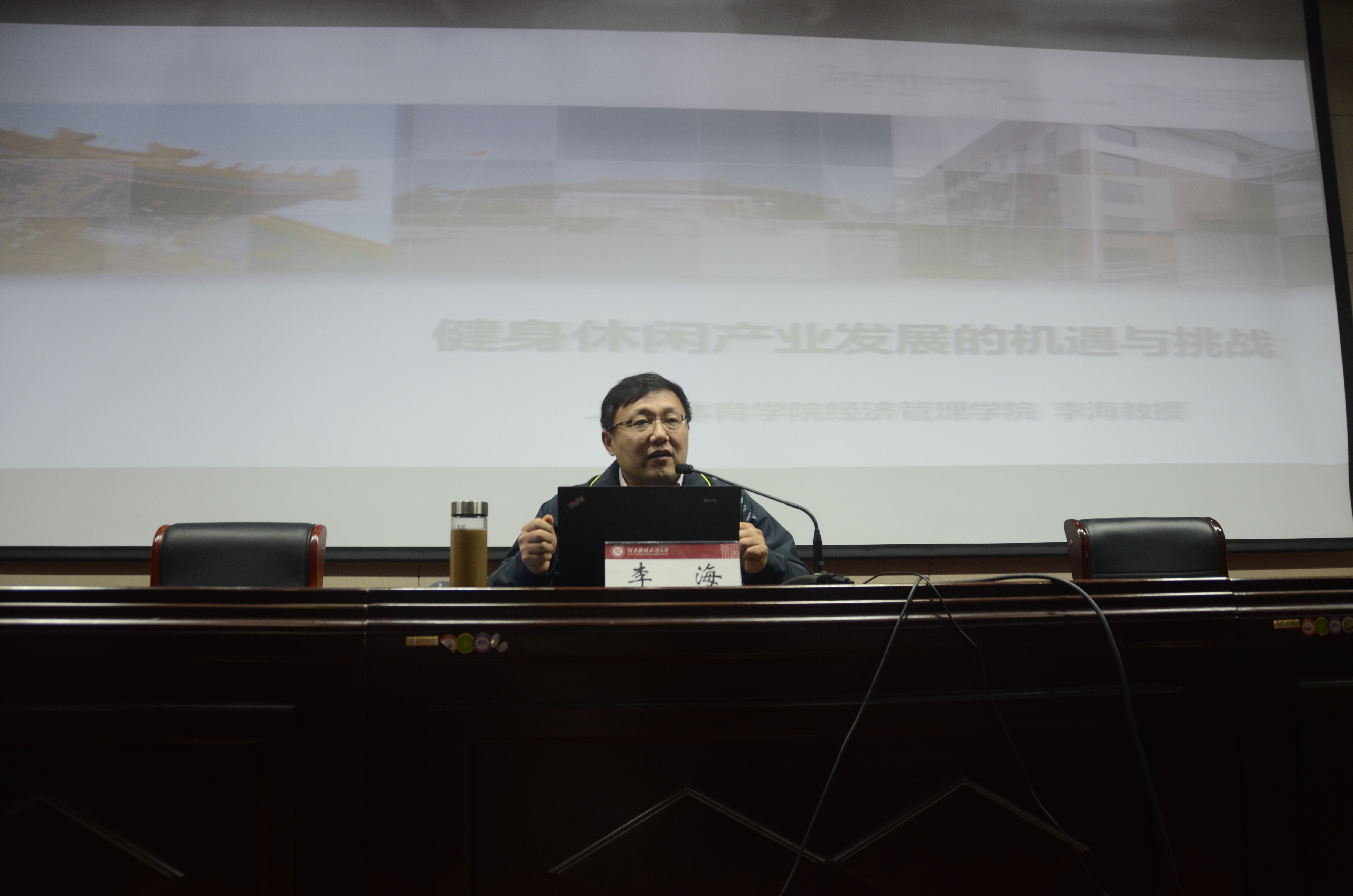 3月15日,我校体育部(系)邀请上海英国365集团博士生导师、经济管理学院院长、上海体育旅游研究中心主任李海教授,来我校进行了“健身休闲产业发展的机遇与挑战”为主题的学术报告。学术报告会由体育部(系)副主任马永红主持,校党委副书记李慧军及体育部(系)教师、和各院系学生代表200多人参加了报告会。