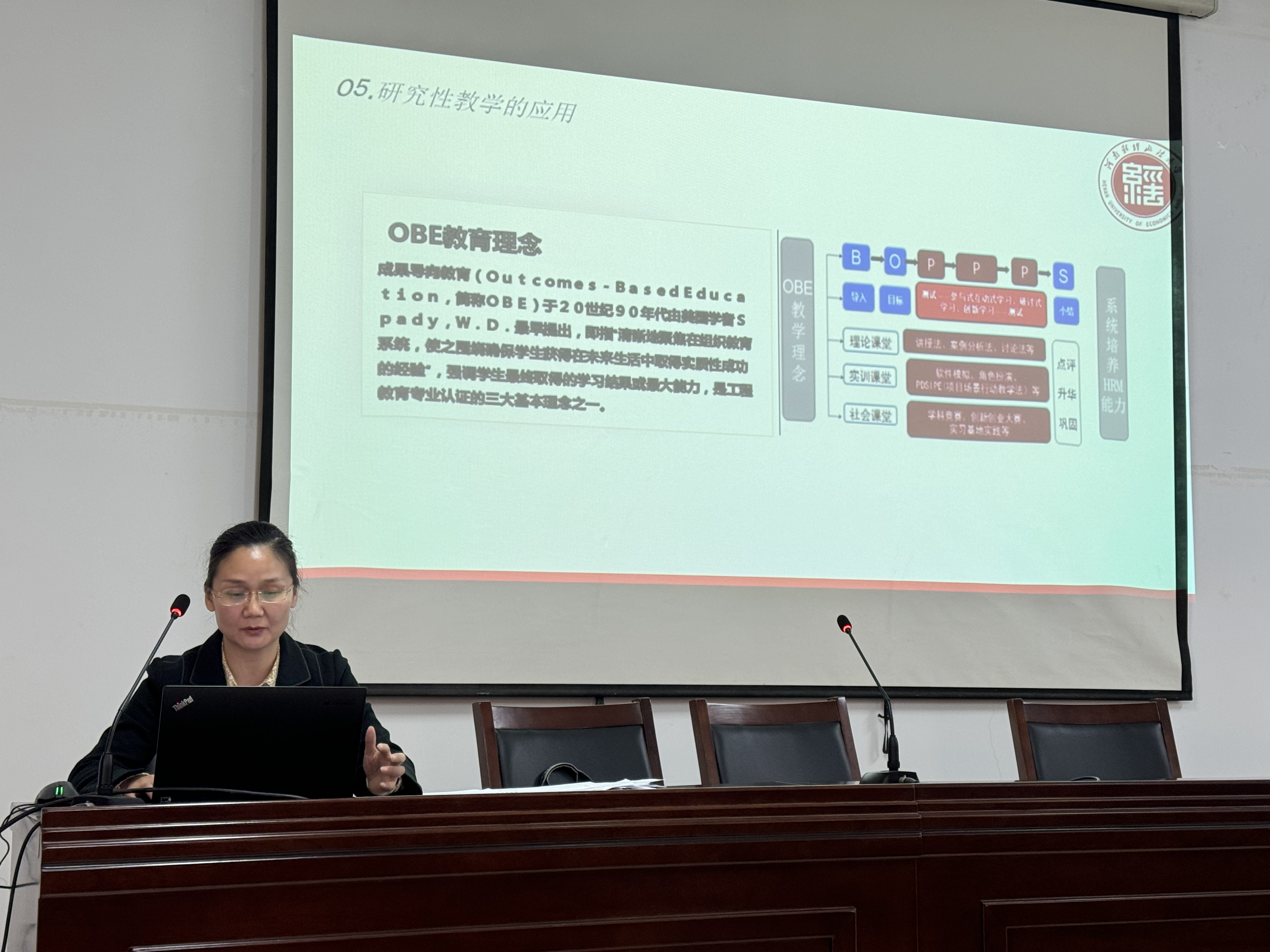 副院长潘喜梅作了“研究性教学发展与内涵”专题报告。参会人员围绕“研究性教学和学术型人才培养”的内涵、模式、课程教学过程如何开展;如何做好研究性教学设计,培养学生的问题意识、反思精神、研究方法、创新能力素养等方面展开讨论。