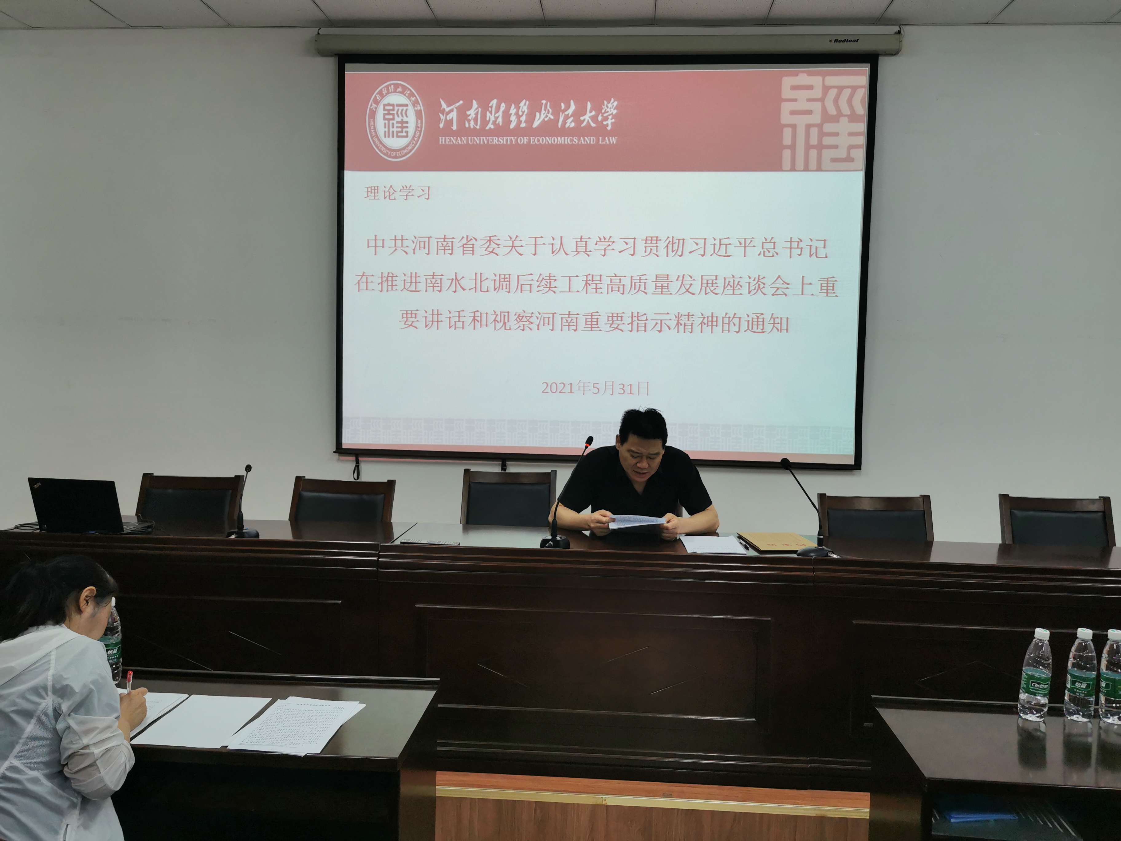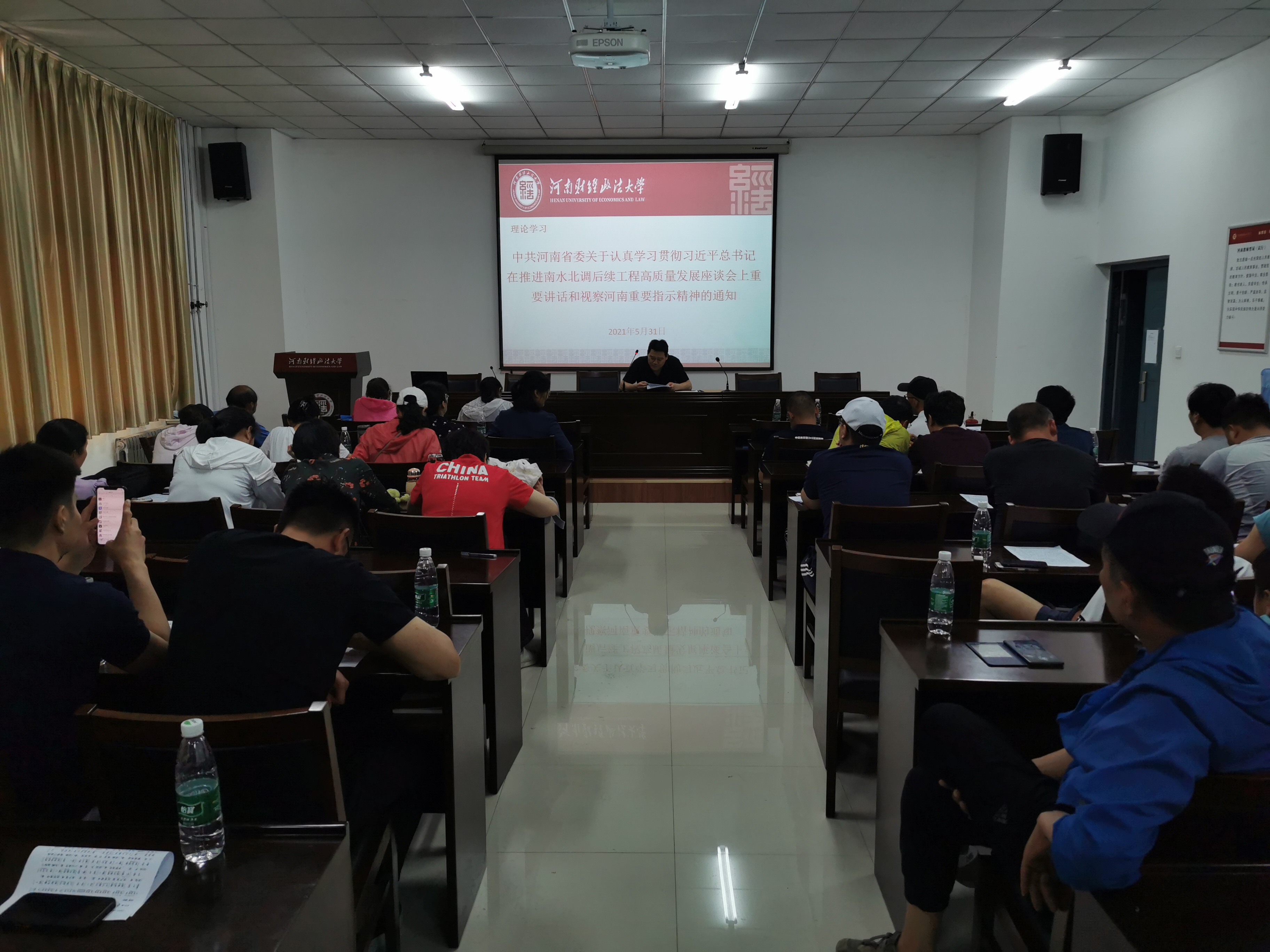 为了学习习近平总书记在河南南阳南水北调渠首考察的指示精神,5月31日体育部组织全体党员及教职工在体育部会议室进行了集中学习,学习由体育部书记刘国同同志主持进行。