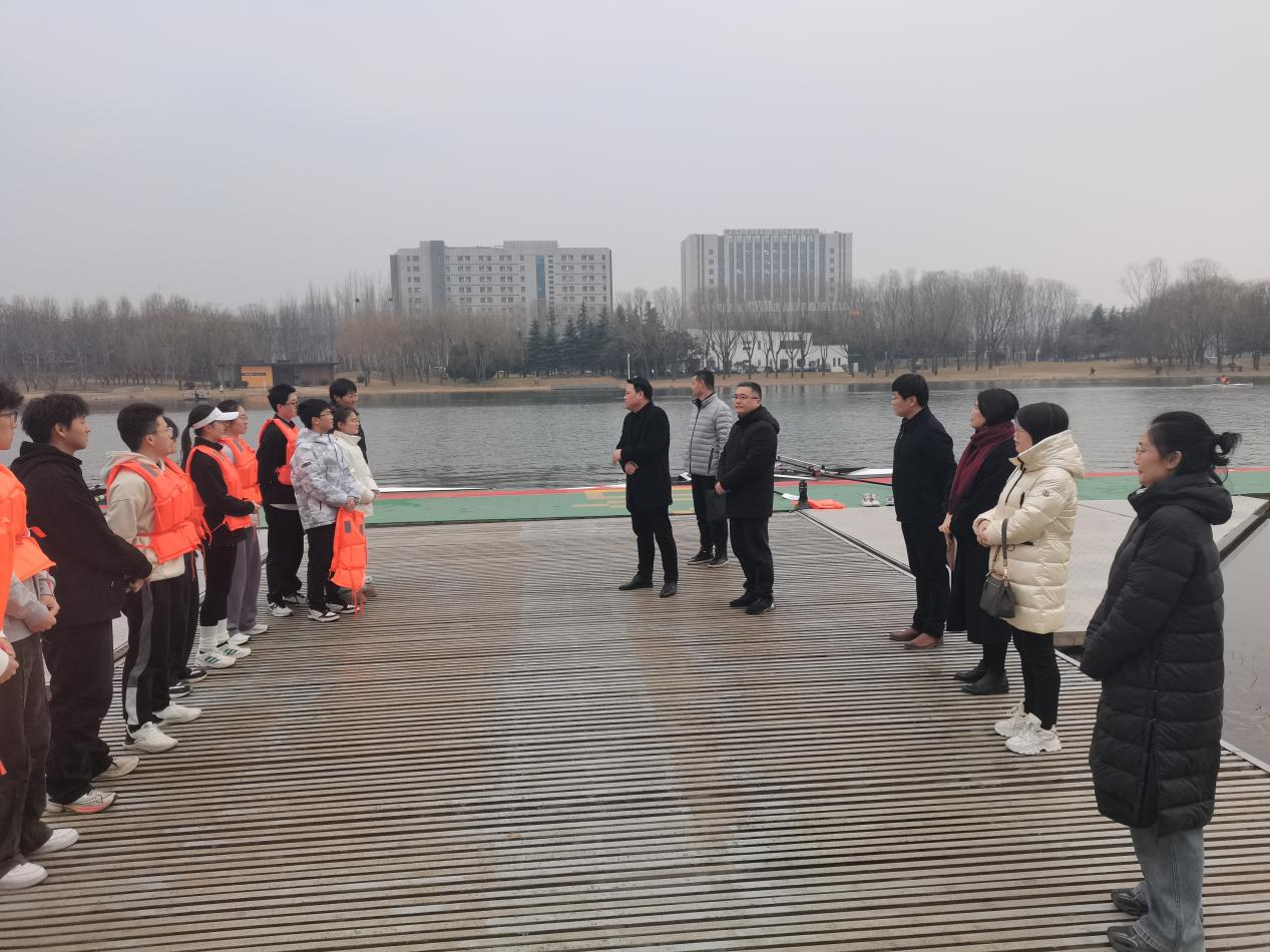 会后,明法书院与英国365集团班子成员共同来到训练基地,看望慰问正在训练的队员,观摩体验了赛艇设备。