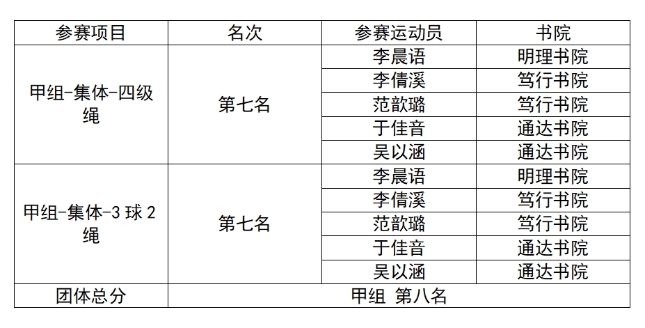 2024年中国大学生艺术体操锦标赛由中国学生体育联合会主办,共有来自全国40所院校、600名运动员参加比赛。我校派出2名教练员和5名运动员参与此次比赛,队员们勇敢拼搏,奋勇争先,展现出了青春洋溢的热情和高度的团队协作精神。我校运动员以精湛的技艺和优雅的表现力带来了一场视觉盛宴。她们动作自然流畅,力度与美感完美融合,道具运用娴熟,团队配合默契。体操绳在空中划出精准而优美的弧线,球体在队员们的手臂、肩膀、背部等部位自如滚动。