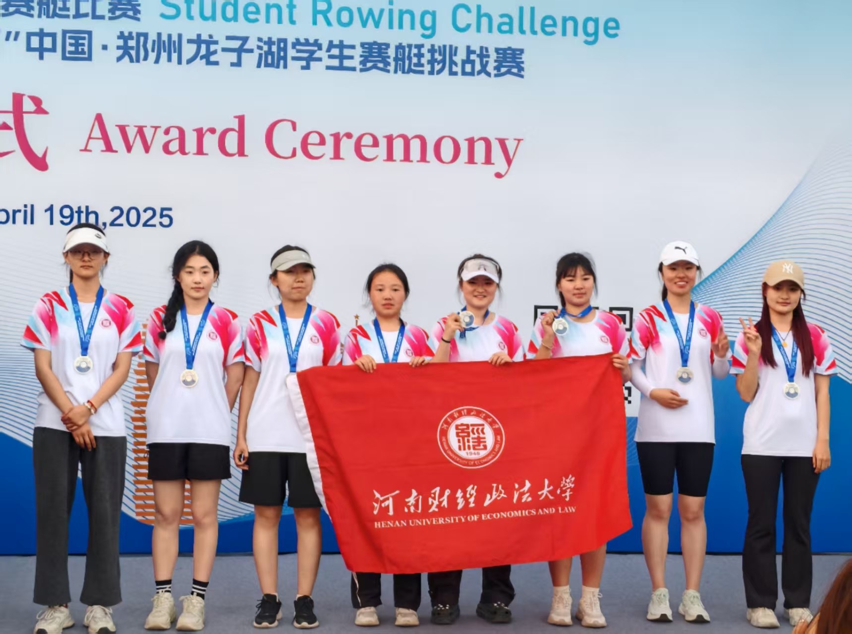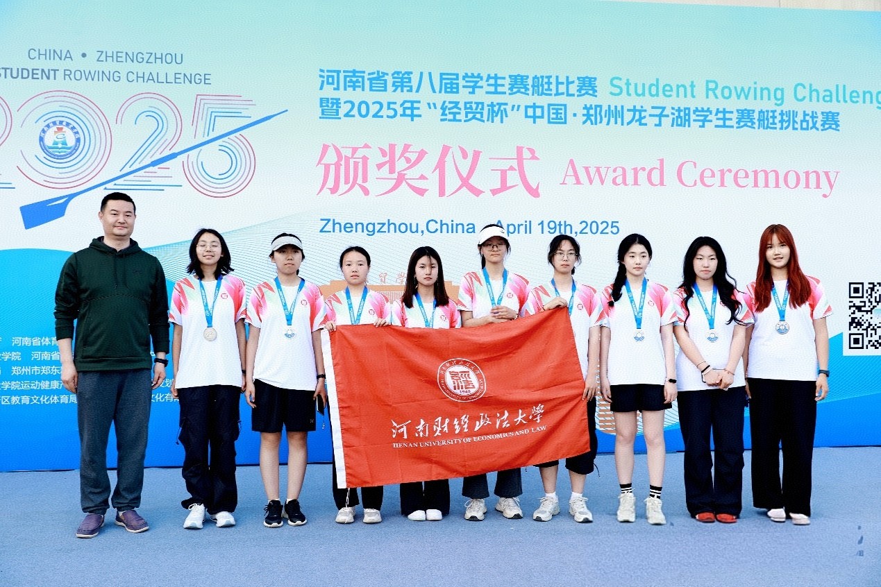 4月19日至20日,由河南省教育厅、河南省体育局、郑州市人民政府联合主办的2025年河南省第八届学生赛艇比赛暨2025年“经贸杯”中国·郑州龙子湖学生赛艇挑战赛在郑东新区龙子湖开幕,我院赛艇队运动员应邀参加,在比赛中奋勇拼搏,最终斩获三金八银的优异成绩。