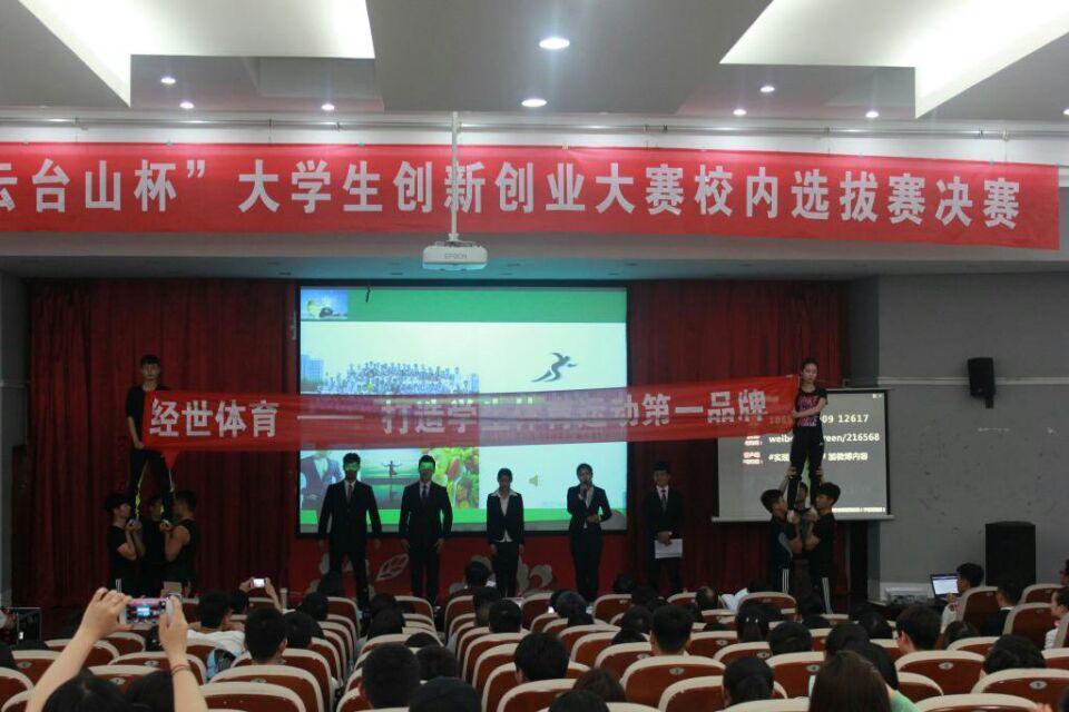 4月29日,由就业指导处主办,工程管理与房地产学院、工商管理学院、文化传播学院承办的“云台山杯”2015中国河南—美国区域高校大学生创新创业大赛校内选拔赛决赛在教1-220报告厅举行,副校长司林胜和就业指导处、各院系负责人参加了本次活动。体育系经世体育公共服务有限公司团队表现出色,获得优异成绩。