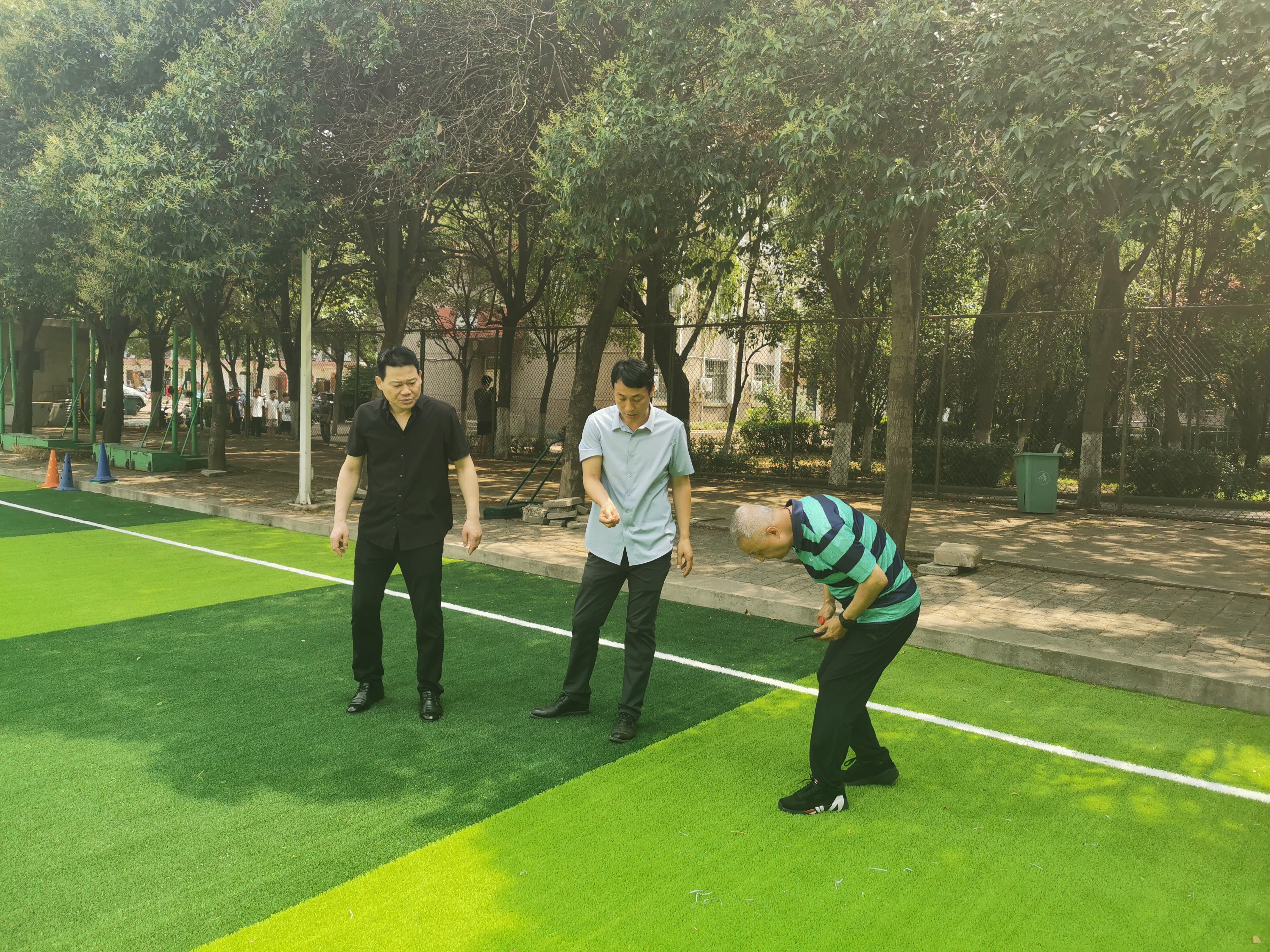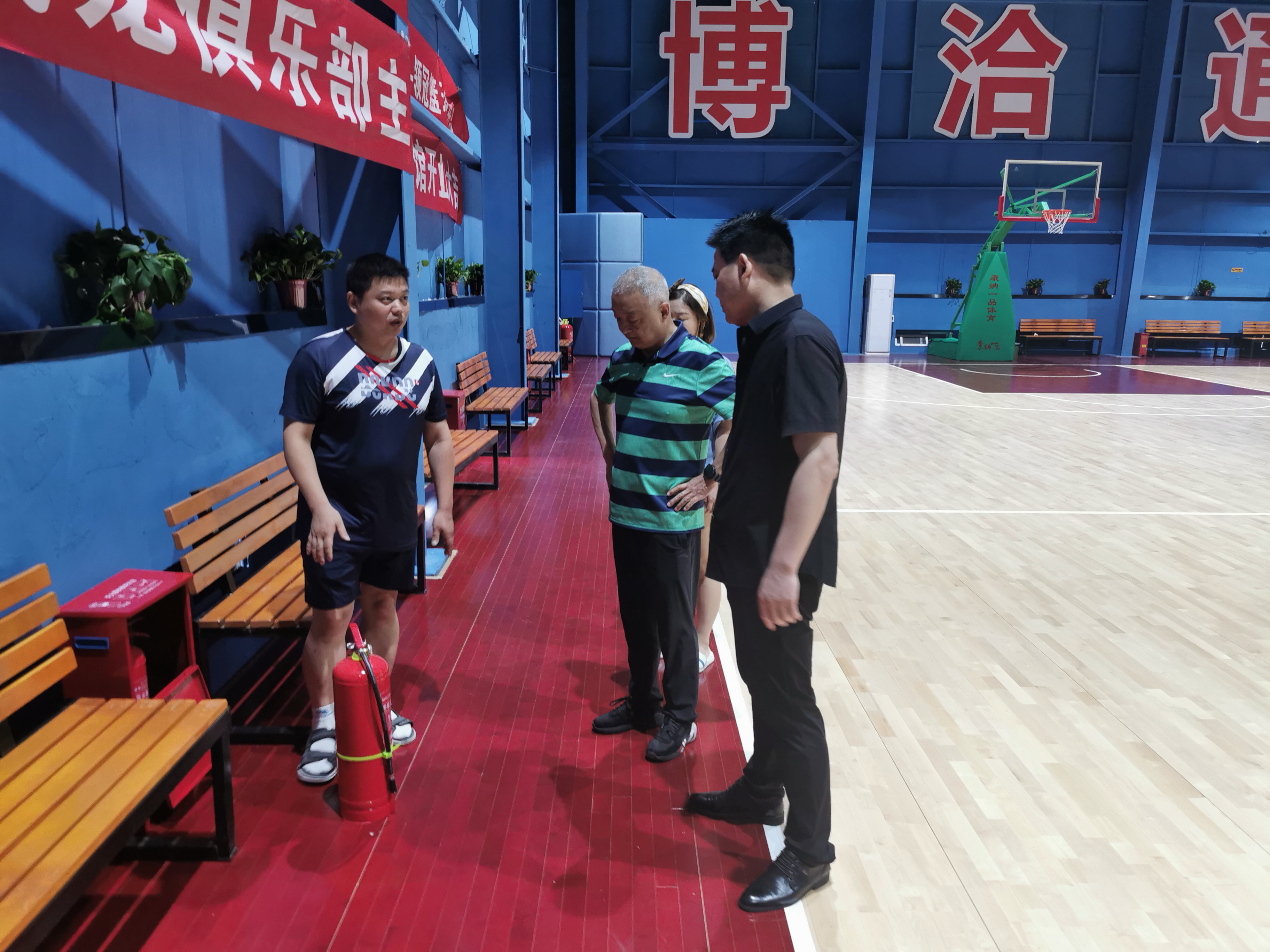 6月30日体育部(系)党总支刘国同书记、体育场馆管理中心张二伟主任、体育部(系)党政办公室主任刘东涛一行三人对郑东校区、文北校区体育场馆消防安全进行了检查。