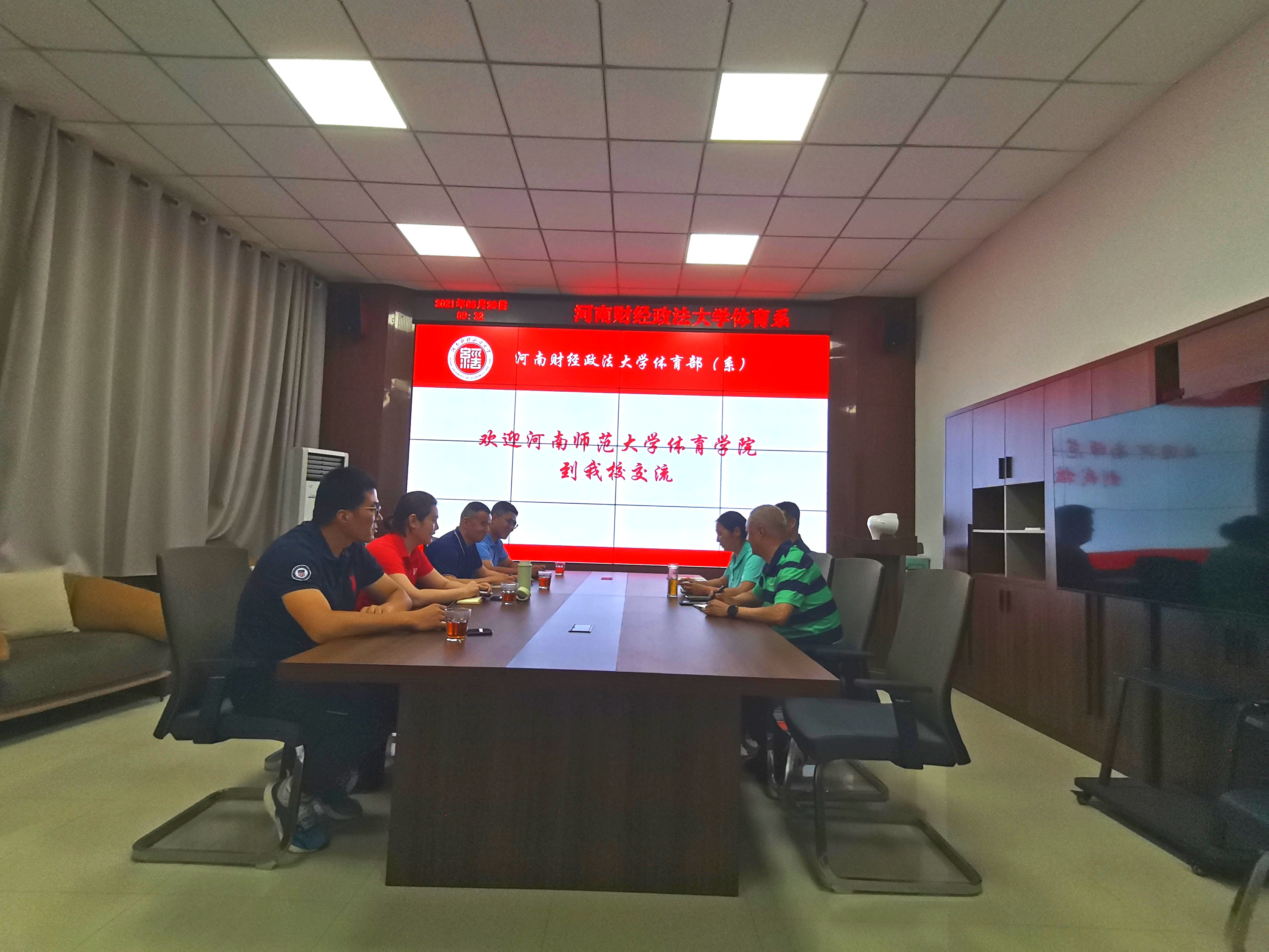 6月29日,河南师范大学英国365集团孟国正副院长一行来到体育部进行交流学习,体育部主任马永红教授,体育场馆管理中心张二伟主任进行了接待交流。