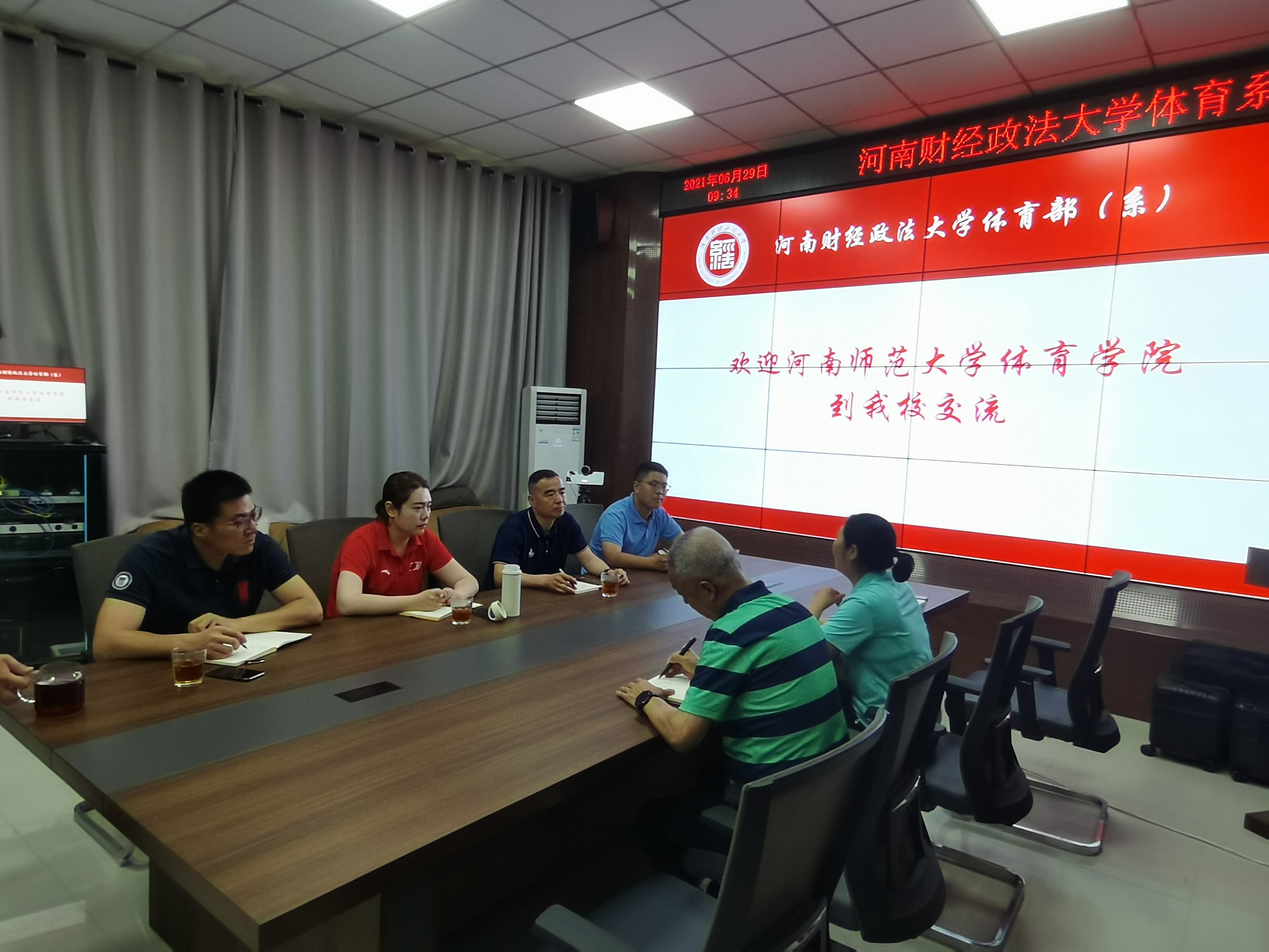 孟国正副院长对我部的热情接待表示衷心感谢,并高度赞扬了我院近年来的发展成就。此后,双方就本科教学及人才培养、高水平运动队、学科建设经验等方面展开深入交流,并希望双方进一步加强合作,共同努力,为我省体育人才建设发展做出积极贡献。