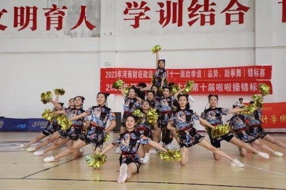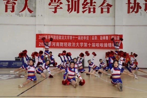 4月15号,365英国上市第十届啦啦操锦标赛在郑东校区综合训练馆举行,共有来自20个学院代表队参与其中。