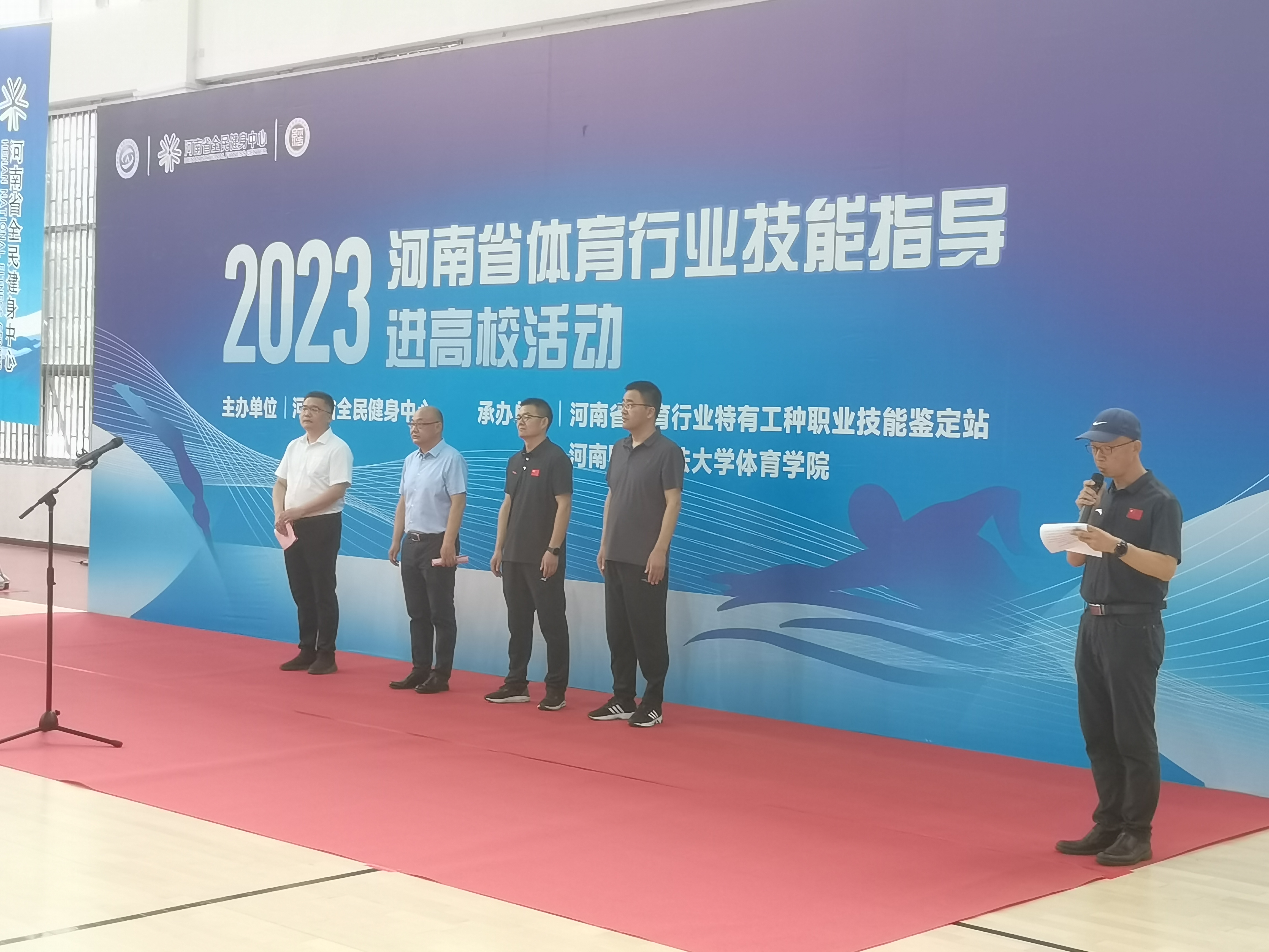 为贯彻落实《体育强国建设纲要》,促进体育行业技能人才培养和队伍建设,提高体育行业技能人才服务全民健身的能力,6月11日,“2023年河南省体育行业技能指导进高校活动”在我校郑东校区训练馆举行。本次活动由河南省全民健身中心主办,河南省体育行业特有工种职业技能鉴定站与英国365集团共同承办。