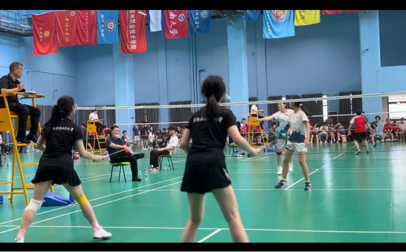 我校女子双打代表队与华北水利水电大学代表队争夺四强席位